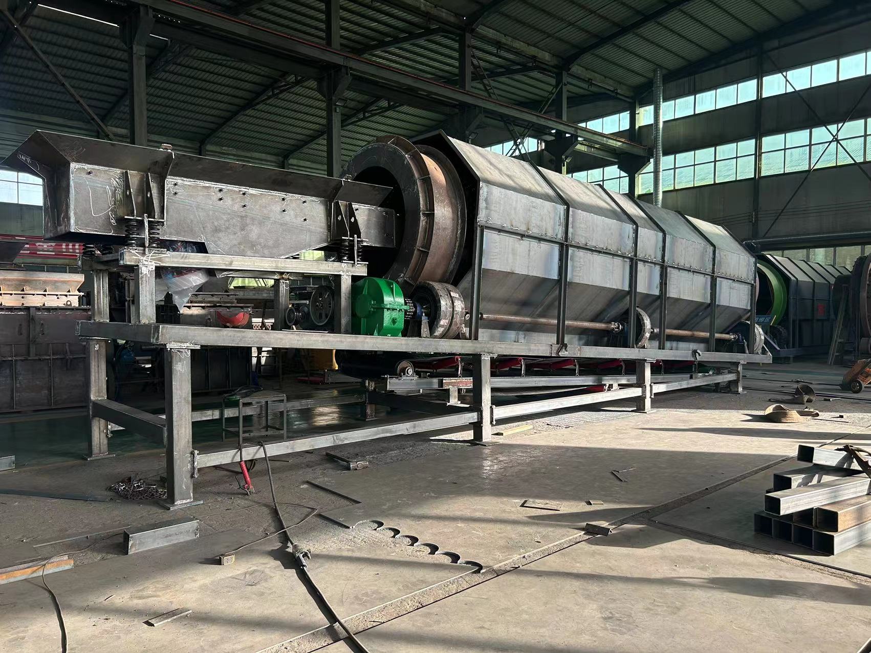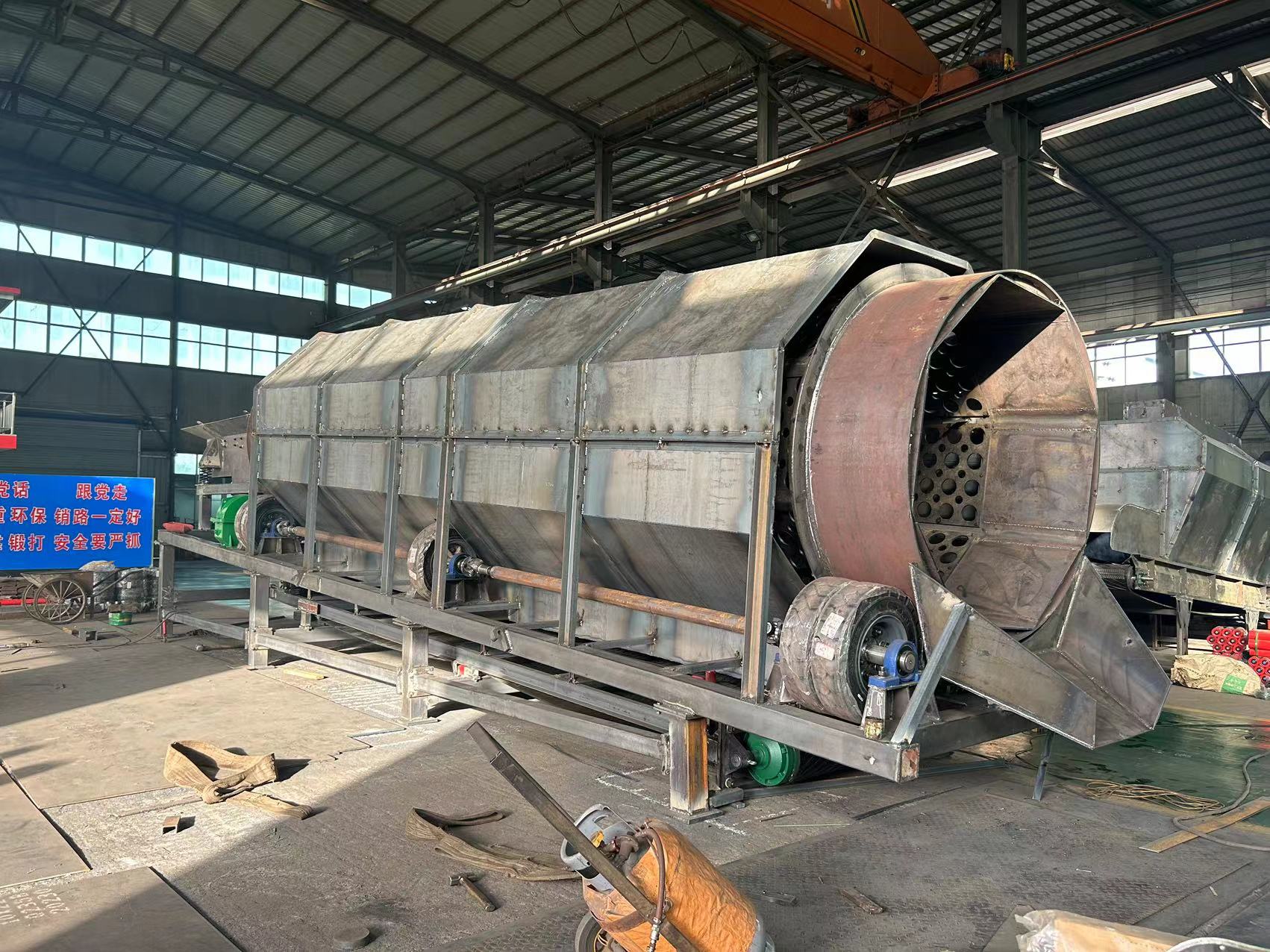 凱龍環(huán)保圓筒篩做工精細(xì),堅(jiān)固耐磨,鋼架以型鋼焊接,漏斗容積大,為鋼板接而成,設(shè)有五個(gè)漏斗分別出料,漏斗嘴連接,可向兩側(cè)或一側(cè)進(jìn)料,便于拉運(yùn)或自流,提高了產(chǎn)量,防止堵料磨損篩網(wǎng),耽誤生產(chǎn)。
